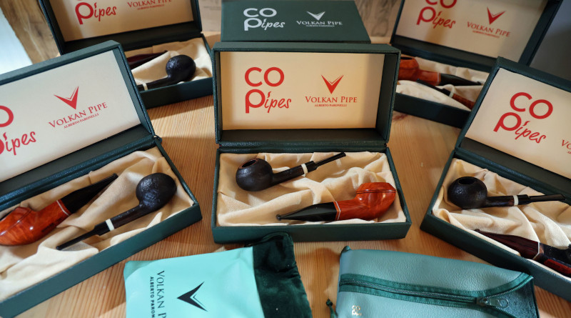 Das Herzstück der Präsentation waren drei Set-Variationen, die jeweils eine ‚Paronelli‘- und eine ‚CO Pipes‘-Pfeife enthalten. Die Sets sind auf zwanzig Exemplare je Ausführung limitiert. Die Modelle werden ohne Filter geliefert und verfügen über Mundstücke aus Ebonit oder Cumberland. Je nach Finish kosten die Sets zwischen 800,00 und 1.300,00 Euro. Klemme betonte die unterschiedlichen Charaktere der Pfeifen und die dadurch entstehende Bandbreite für verschiedene Budgets.